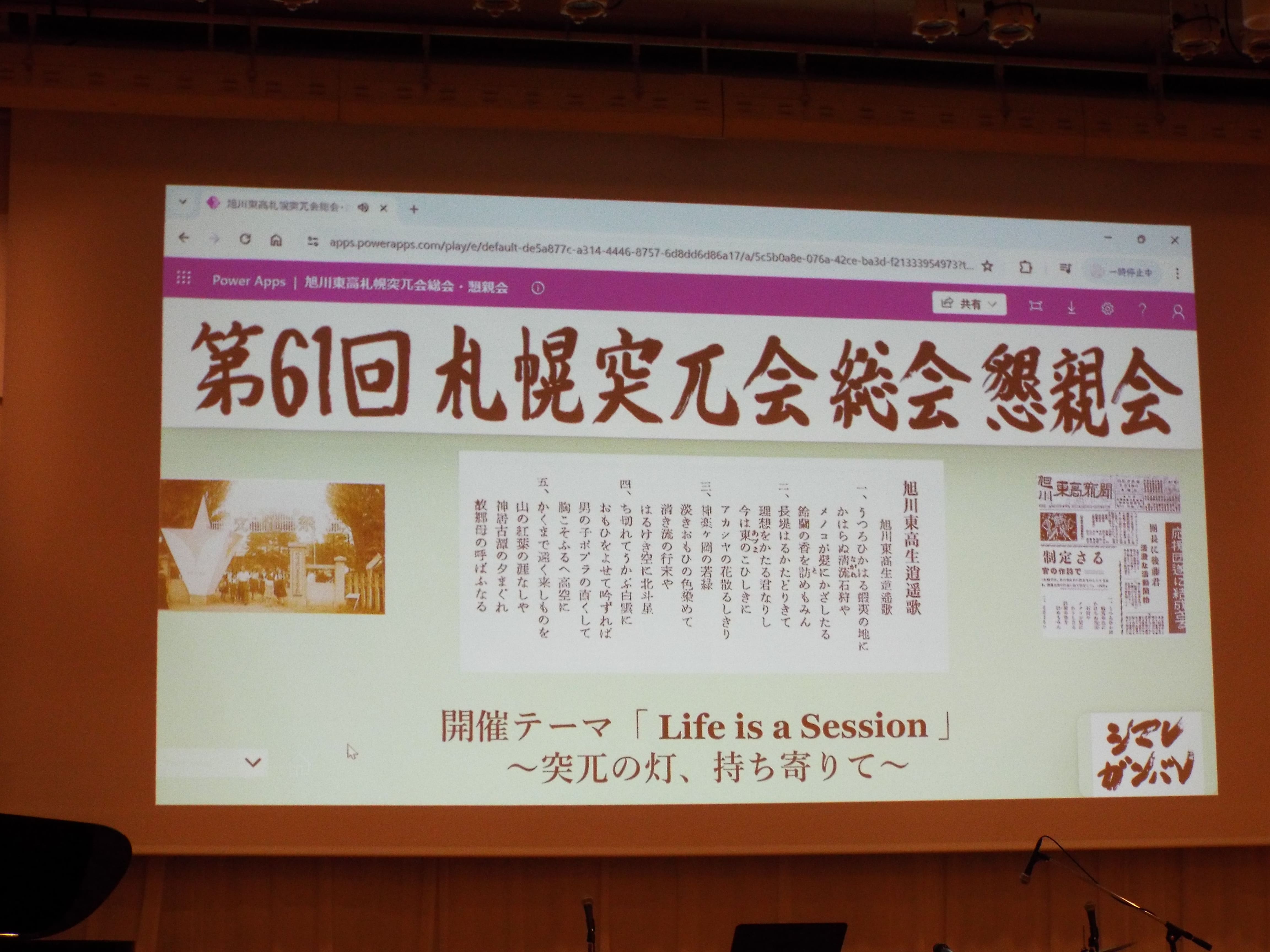 副幹事長にならないかと誘ってくれた横内さんも故人となられ、役員会のメンバーも重鎮と呼ばれる方々の出席も減って、漠然とした危機感というか不安感を抱いている中、旭川東高41期当番による「第61回札幌突兀会総会・懇親会」が開催された。