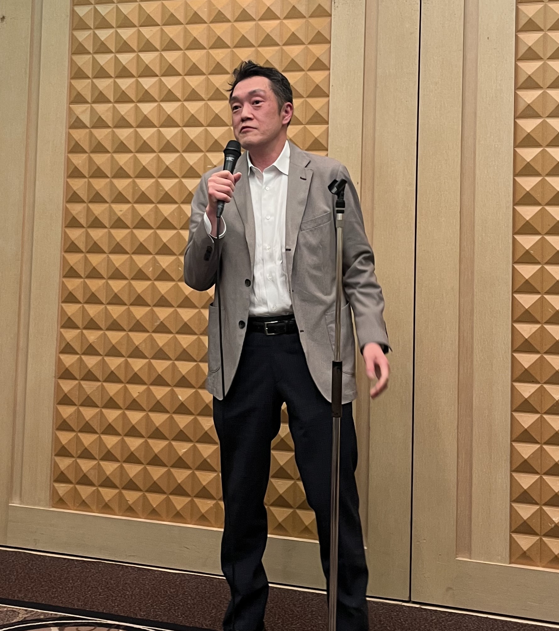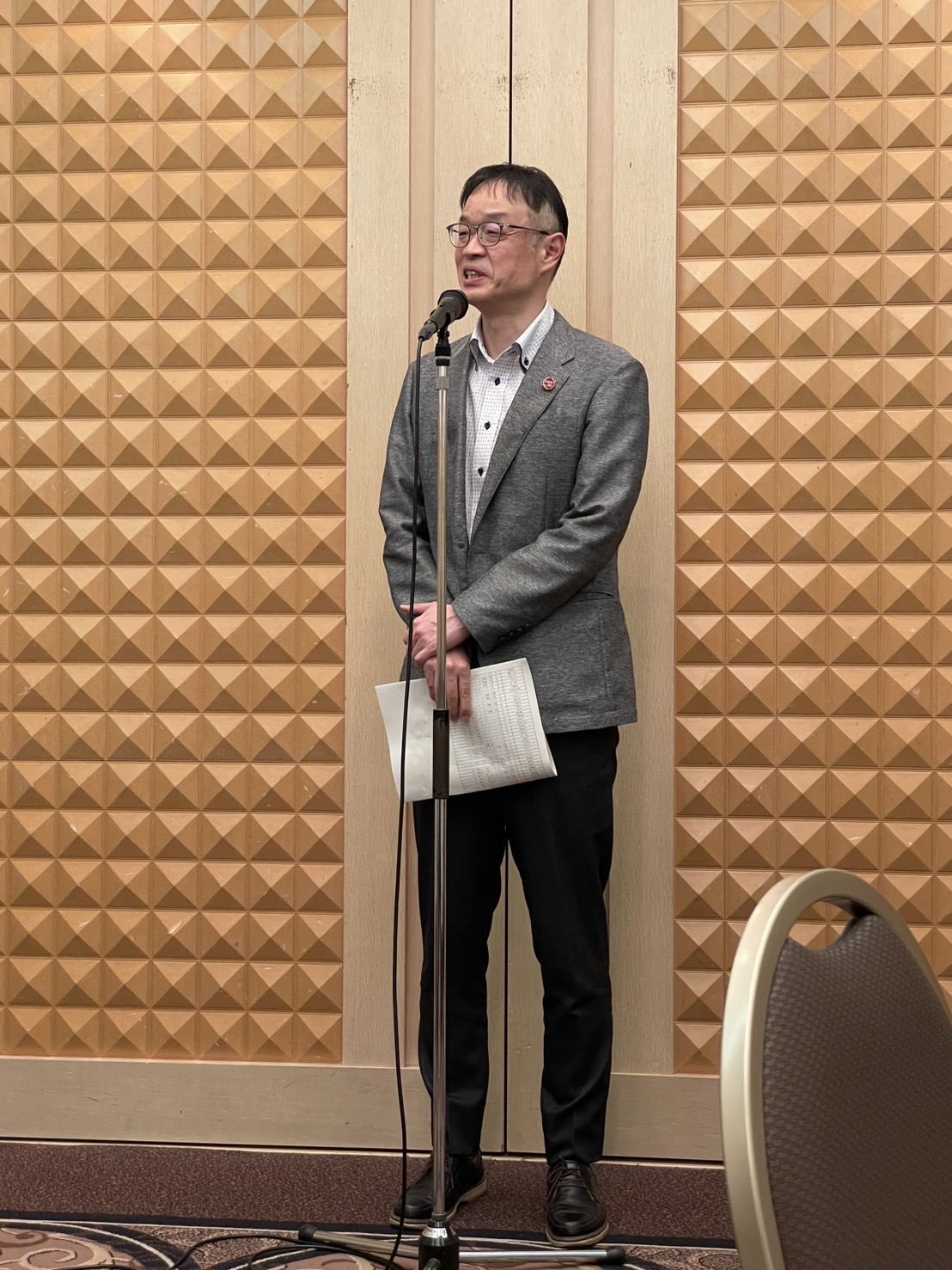 最初に司会の私(幹事長 畠山)から、そのあたりの話をして会長の挨拶へとつなぐ。