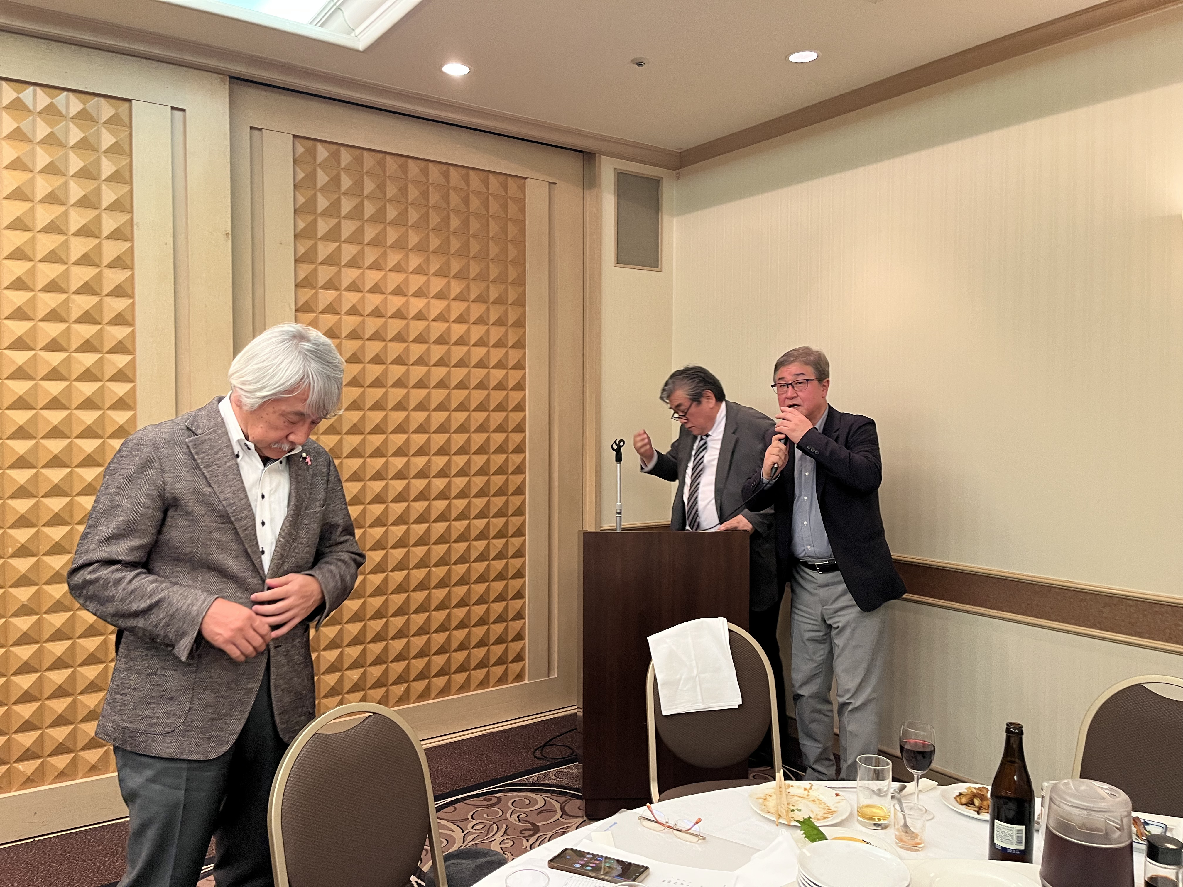 閉会にあたり、畠山幹事長(東高28期)より閉会の挨拶があり、新入会員への今後の期待と、突兀会のさらなる発展への意欲が述べられました。参加者全員で記念撮影を行い、新入会員歓迎会は盛況のうちに幕を閉じました。