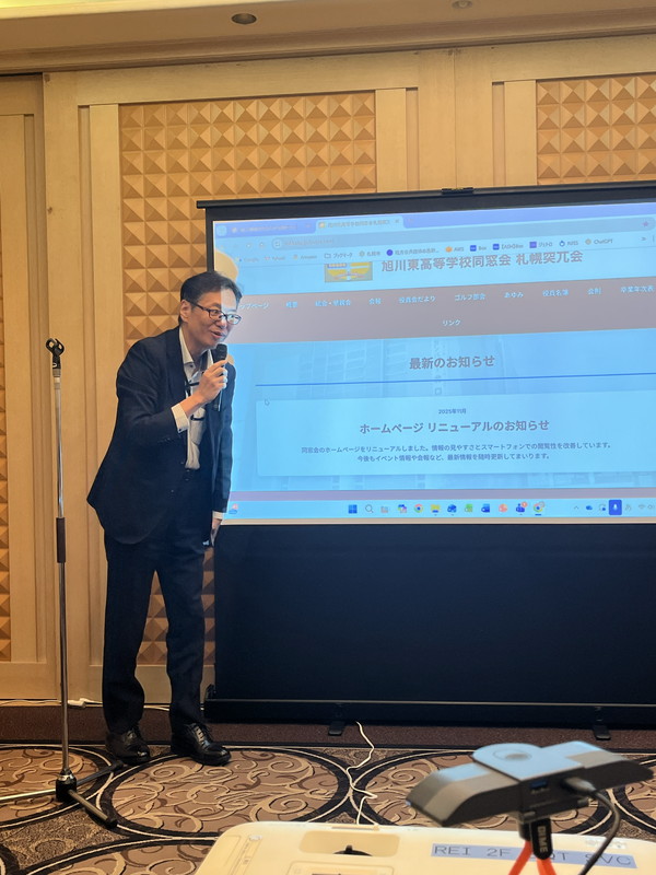 生成AIを取り入れた新しい開発手法「バイブコーディング」による制作、旧サイトの整理、会報アーカイブや校歌動画の掲載など、多面的なリニューアル内容が紹介された。会場ではスマートフォンで実際の画面を確認する姿も多く見られ、「とても見やすくなった」と好評を得た。