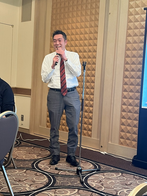 今年度当番の42期からは、納真悟当番長らが総会・懇親会の運営報告を行い、当日の様子をスライドを交えて紹介。ゴルフ大会でのエピソードや、懇親会での裏方の奮闘など、現場の雰囲気を伝える内容に、参加者から笑いが起こった。